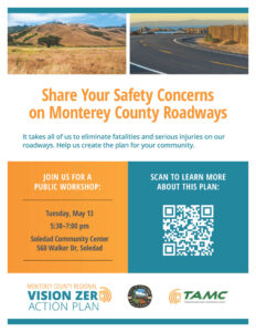 Help make Monterey County roads safer for everyone by attending a public workshop and sharing your safety concerns and ideas.