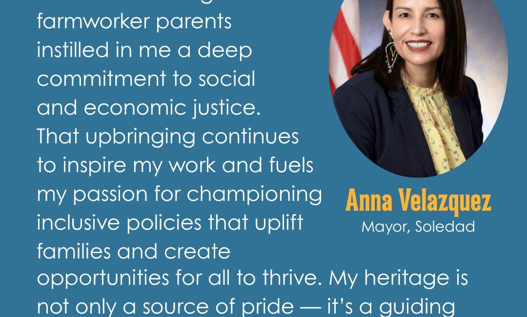 Anna Velazquez is the first Mexican American and first woman to serve as mayor of City of Soledad. She draws on her upbringing as the daughter of farmworker parents to champion inclusive policies, uplift families, and ensure every voice is valued.