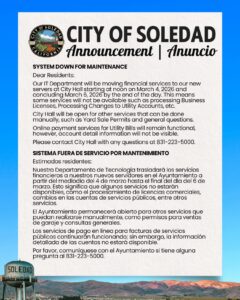 Los pagos en línea de facturas de servicios públicos seguirán funcionando, pero los detalles de las cuentas no estarán visibles. El Ayuntamiento permanecerá abierto para servicios que puedan realizarse manualmente.