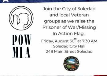 On Friday, August 31st, at 7:30 am, the City of Soledad, along with Veteran groups, will host a ceremony to... Read More → City of Soledad to Raise POW/MIA Flag