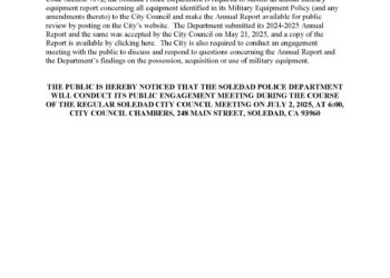 City of Soledad Notice of Public Meeting for Submittal of State CDBG Applications  NOTICE IS HEREBY GIVEN... Read More CITY OF SOLEDAD – Notice of Public Meeting for Submittal of State CDBG Applications
