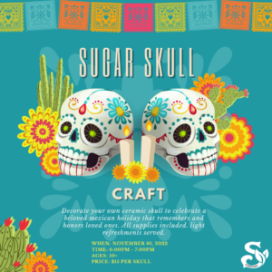 Decorate your own ceramic skull to celebrate Day of the Dead.