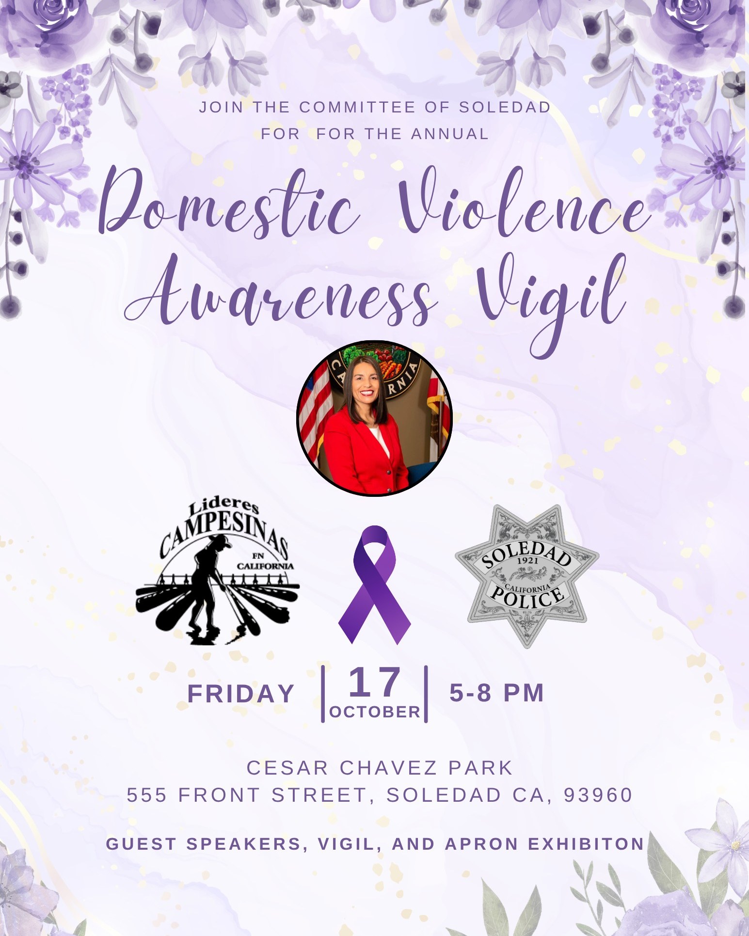 Together, we stand in support, remembrance, and hope. Join us Friday October 17 for the annual Domestic Violence Awareness Vigil with Líderes Campesinas Monterey County and Anna Velazquez at César Chávez Park from 5–8 PM.
